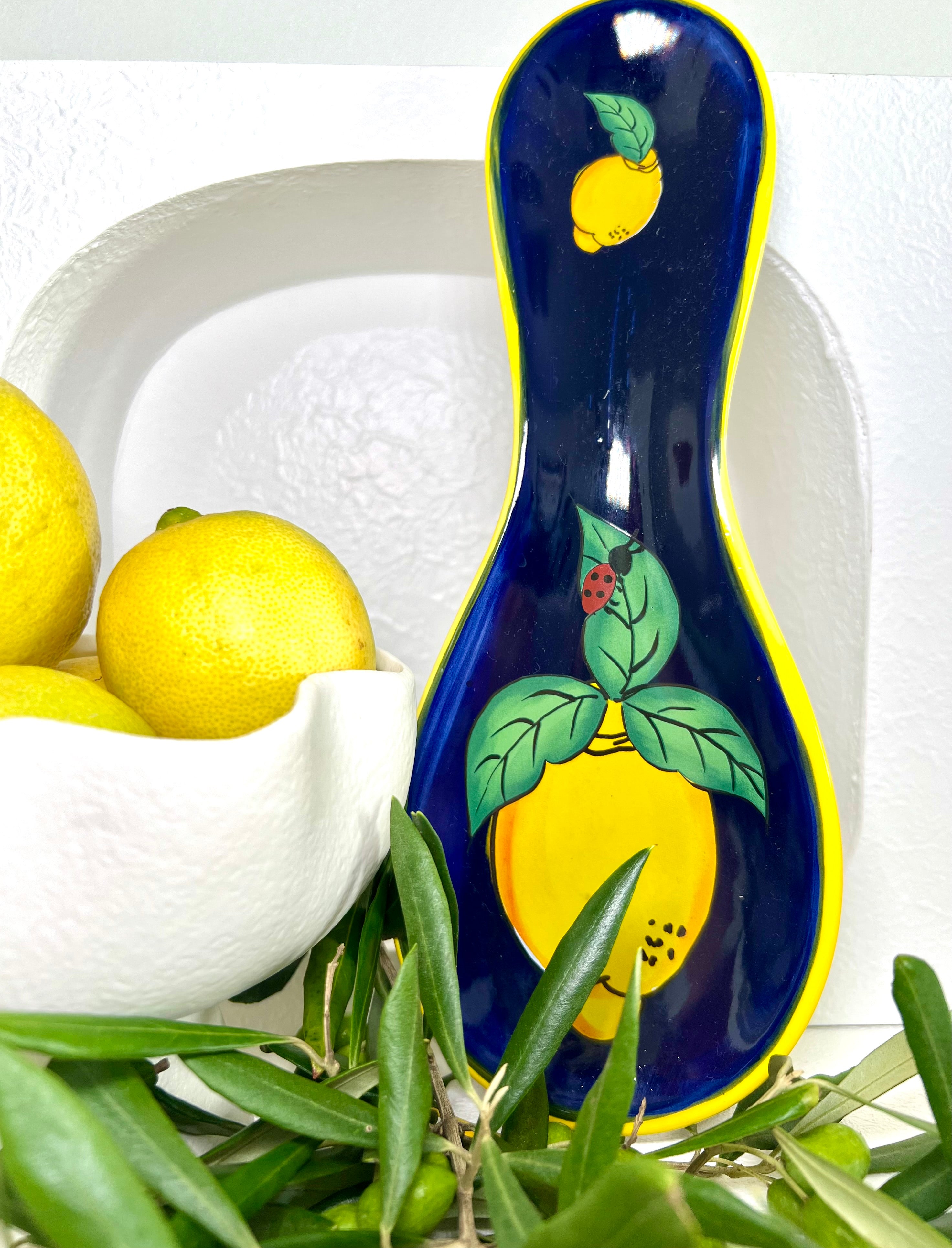 Add a touch of Italian zest to your kitchen with our Ceramic Lemon Spoon Rest, imported straight from Italy. This charming blue spoon rest features a delightful lemon design, echoing...