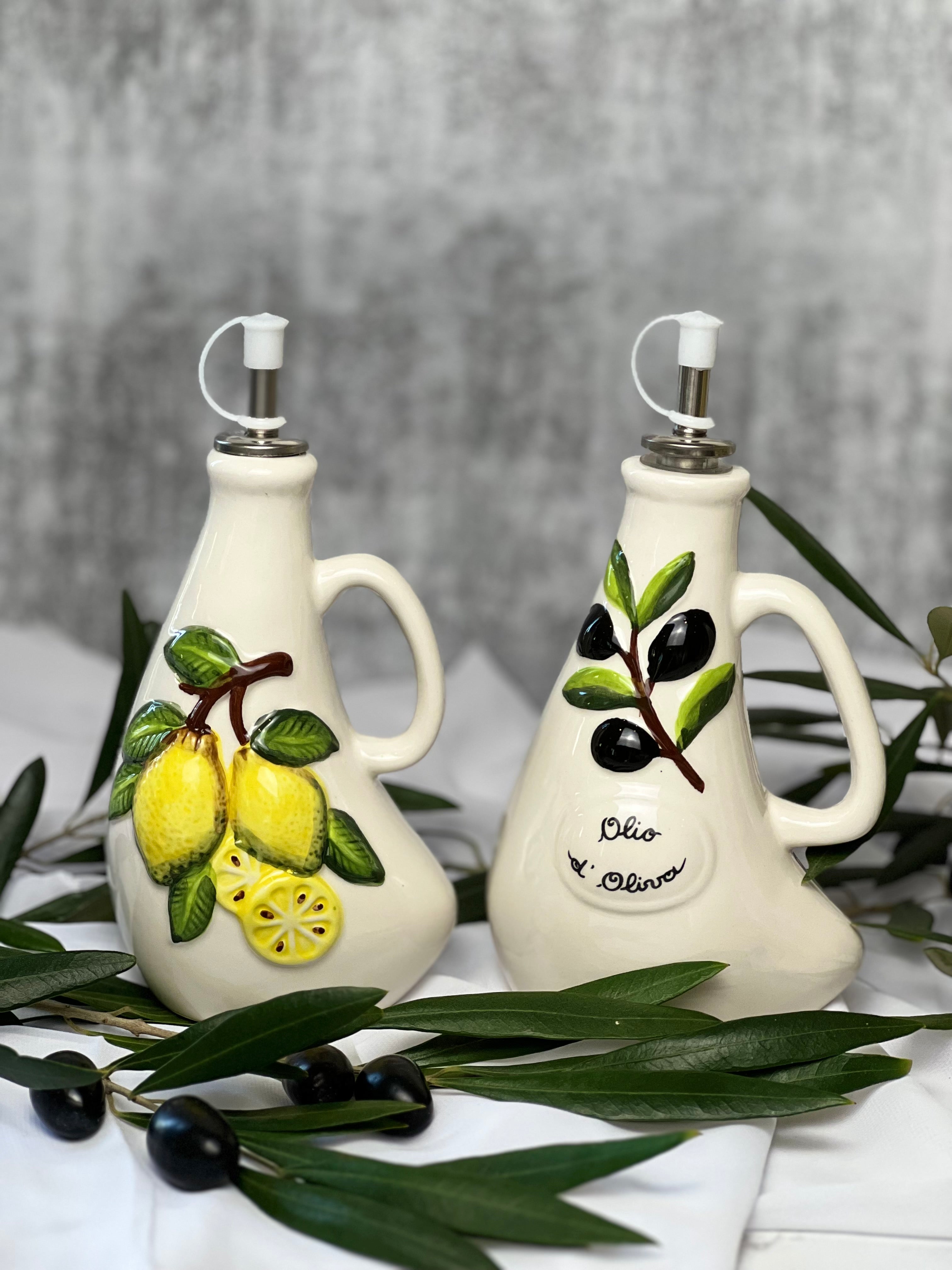 This elegant yet practical oil pourer is a beautiful addition to any kitchen. Its curved shape allows for easy and precise pouring, making it a versatile tool for drizzling your favourite olive oil or other dressings. The lemon or olive pattern, reminiscent of the Italian countryside, adds a touch of Mediterranean charm to your dining experience.